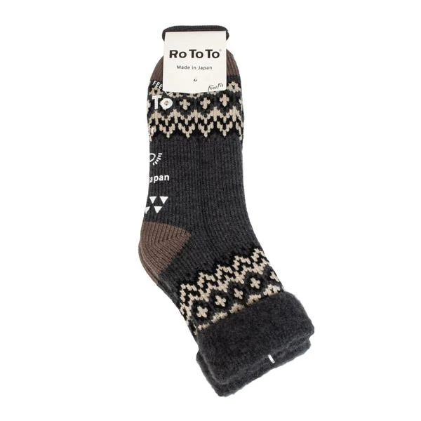 No slippers needed with the RoToTo Comfy Room Socks. These super-thick socks will do the job. Product Information: Made in Japan Nordic pattern Gripped sole Small 5-7 UK Large 9-11 UK